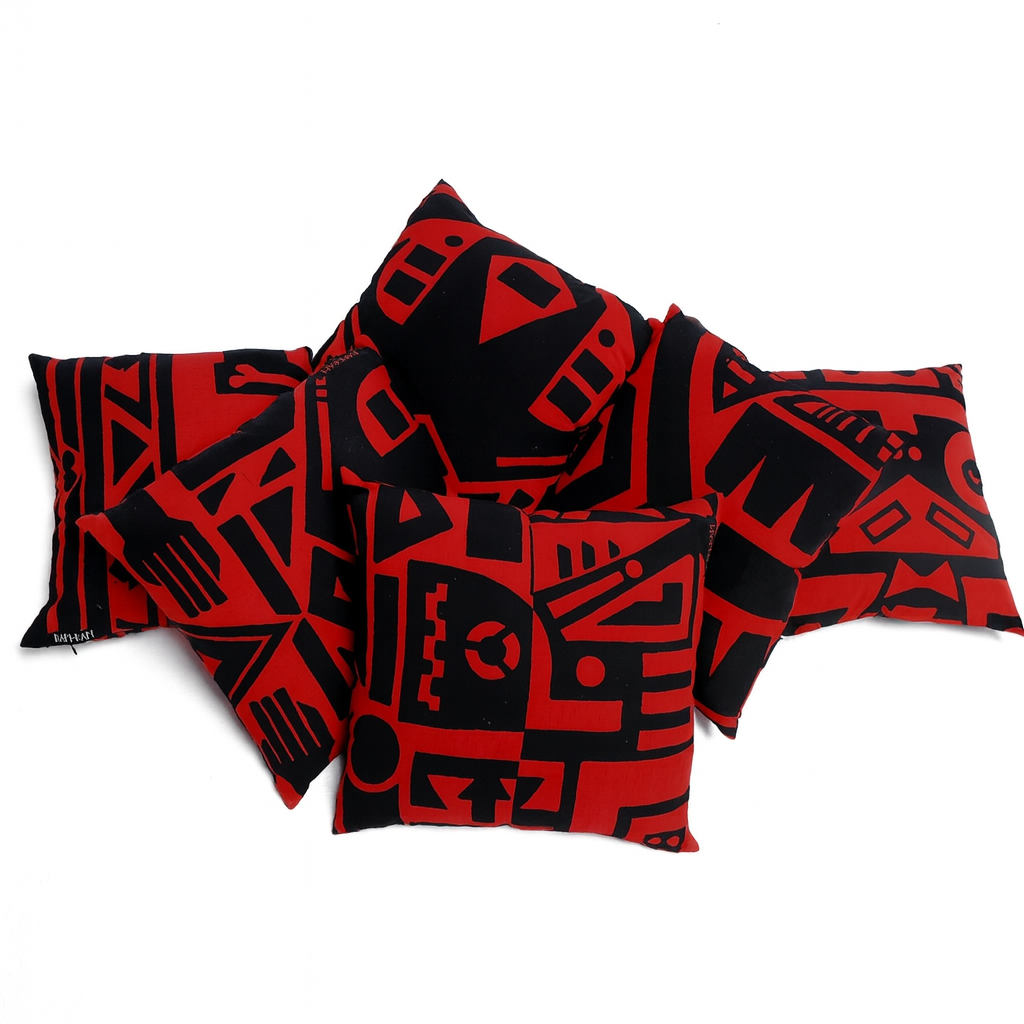 Our red & black cushion covers are created from the original Bam-Bam illustrations that are screen-printed onto high-quality cotton twill. A robust and soft fabric that is easily machine washed. The cushion cover is 40cm x 40cm with a hidden side zip.